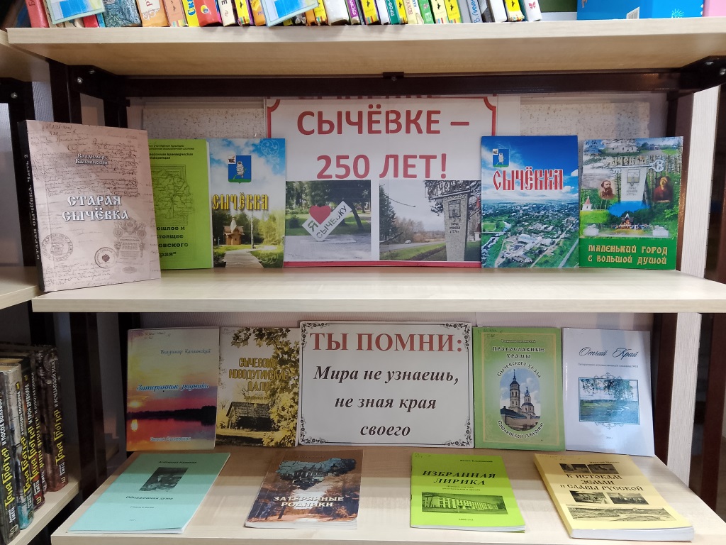 В этом году Сычёвка отмечает своё 250-летие. Город был основан указом императрицы Екатерины II в 1776 году. В Дугинской библиотеке открылась выставка, посвящённая юбилею Сычёвки. Здесь можно увидеть книги об истории города и района, о знаменитых людях, побывавших на Сычёвской земле, а также произведения поэтов и писателей, воспевающих родные края. Цель выставки — познакомить посетителей с прошлым и настоящим Сычёвки. Она будет работать до конца месяца. Приглашаем всех посетить библиотеку, ознакомиться с экспозицией и узнать больше о своём родном крае.