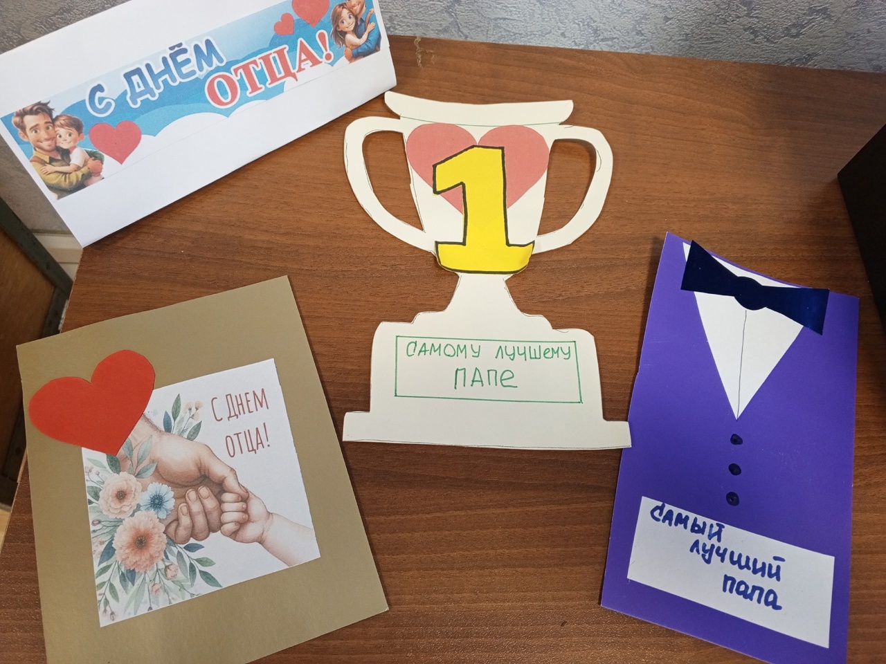 В преддверии праздника День отца, в детской библиотеке в рамках кружка «Умелые ручки» был организован мастер-класс «Открытка для папы». Руководитель кружка Маевская А.М. рассказала ребятам историю праздника, прочла стихотворения, пословицы и поговорки о папах, о семье. Дети с радостью рассказали о своих замечательных отцах: их работе, службе в армии, увлечениях и характере.