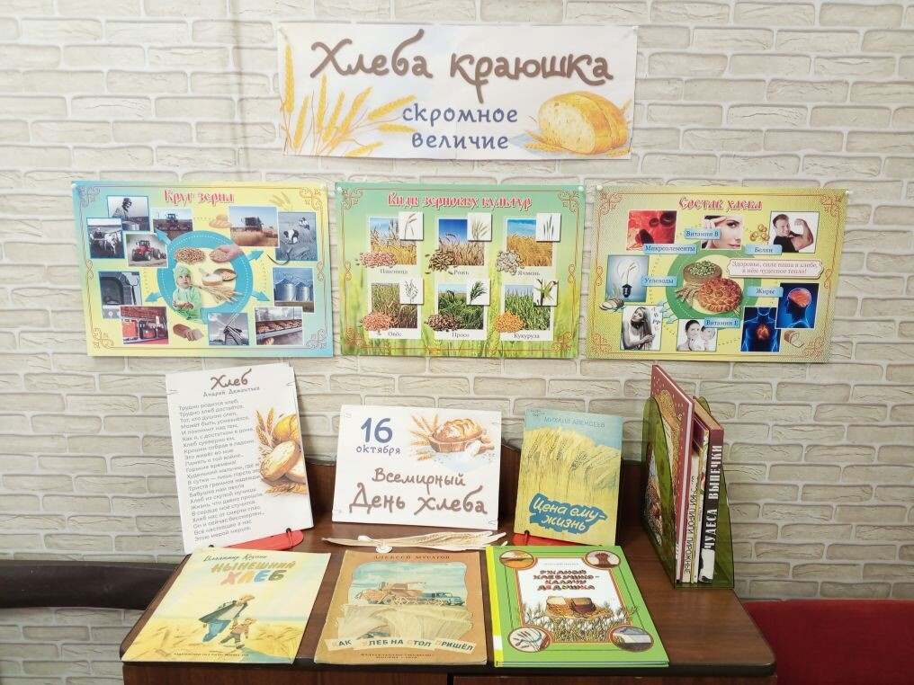 Ежегодно 16 октября отмечается Всемирный день хлеба, к этому празднику в Караваевской библиотеке подготовлена книжная выставка «Хлеб всему голова». Хлеб был и остается символом жизни на земле, ему отводится самое почетное место на столе. На выставке представлены книги известных писателей, а также русско-народные сказки про хлеб: Е. Благинина «Песенка о колоске», М. Пришвин «Лисичкин хлеб», «Колобок» и другие. Посетители узнают, как климат определяет тип хлебной зерновой культуры в том или ином регионе, из чего можно делать муку, каким образом хлеб использовался в обрядах и почему встречать гостей хлебом-солью — признак уважения.