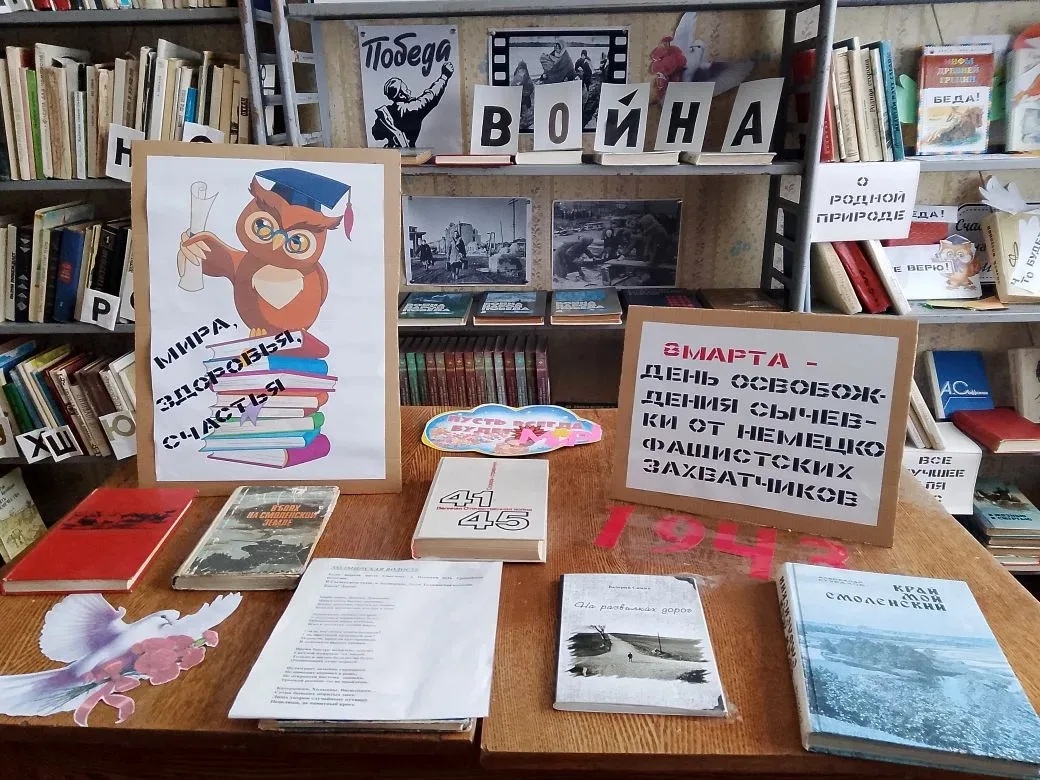 В Сидоровской сельской библиотеке прошёл час памяти «Фронтовые подвиги наших земляков», посвящённый освобождению Сычевского района от немецко-фашистских захватчиков. Библиотекарь рассказала о тех далёких днях, когда наши земляки освобождали Родной край. Не всем из них удалось дожить до Великой Победы. Вниманию читателей была представлена книжная выставка «Память огненных лет». Библиотекарь рассказала присутствующим о тех событиях, которые происходили на территории нашего села и района во время Великой Отечественной войны, озвучила исторические факты освобождения.