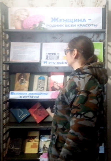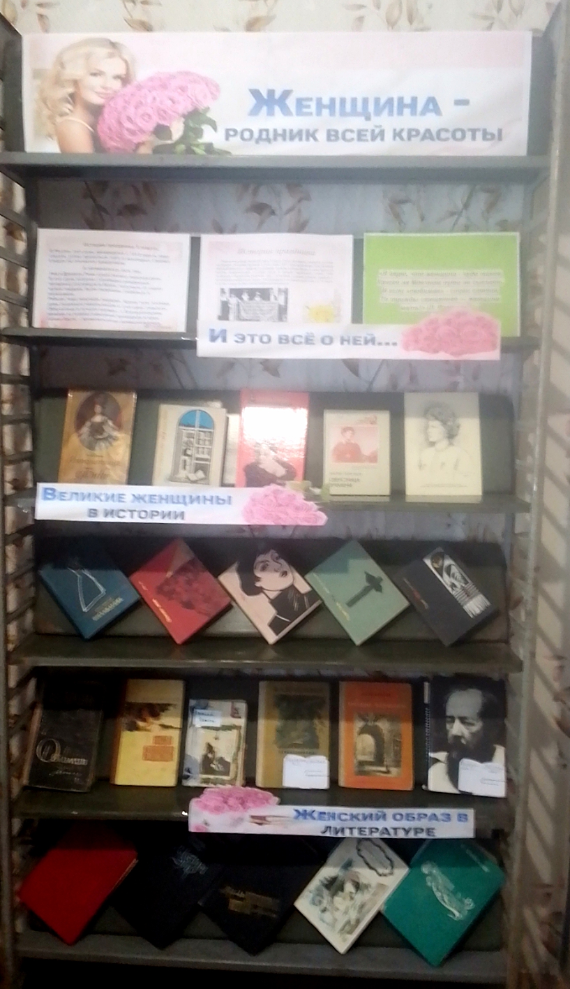 В преддверии первого весеннего праздника Международного женского дня 8 марта в Суторминской библиотеке оформлена выставка "Женский силуэт на фоне истории".