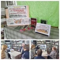 В библиотеке оформлена книжная выставка и прошёл час памяти с просмотром видео Геноцид советского народа. Будем помнить, чтобы не допустить!
