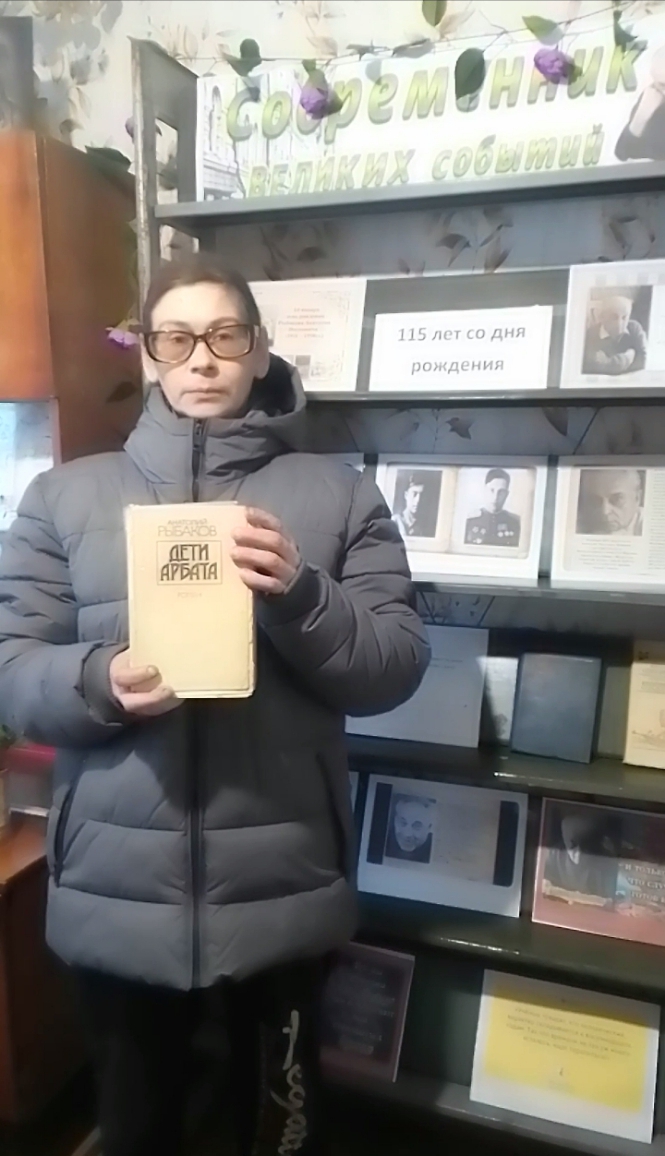 В Сидоровской поселенческой библиотеке оформлена книжная выставка «Современник великих событий» приуроченная к 115 л. со дня рождения русского писателя Анатолия Наумовича Рыбакова (1911-1998). В рамках знаменательной даты – 115-летия со дня рождения выдающегося советского и российского писателя Анатолия Рыбакова, оформлена книжная выставка «Современник великих событий», на которой представлены книги А. Рыбакова. Его книги — это не только увлекательные сюжеты, но и уроки нравственности, призыв оставаться человеком в любых обстоятельствах. К 115-летию со дня рождения Анатолия Наумовича Рыбакова в Сидоровской поселенческой библиотеке прошло литературное путешествие по творчеству А.Н. Рыбакова «А правда остаётся…». Творческое наследие Анатолия Рыбакова знакомо не одному поколению читателей, а его произведения до сих пор популярны и востребованы. Библиотекарь рассказала читателям о жизни и творческом пути Анатолия Рыбакова – лауреата Государственных премий СССР и РСФСР, участника Великой Отечественной войны. Особое внимание было уделено его знаковым произведениям «Дети Арбата», «Страх», «Кортик», «Бронзовая птица» и другие.
