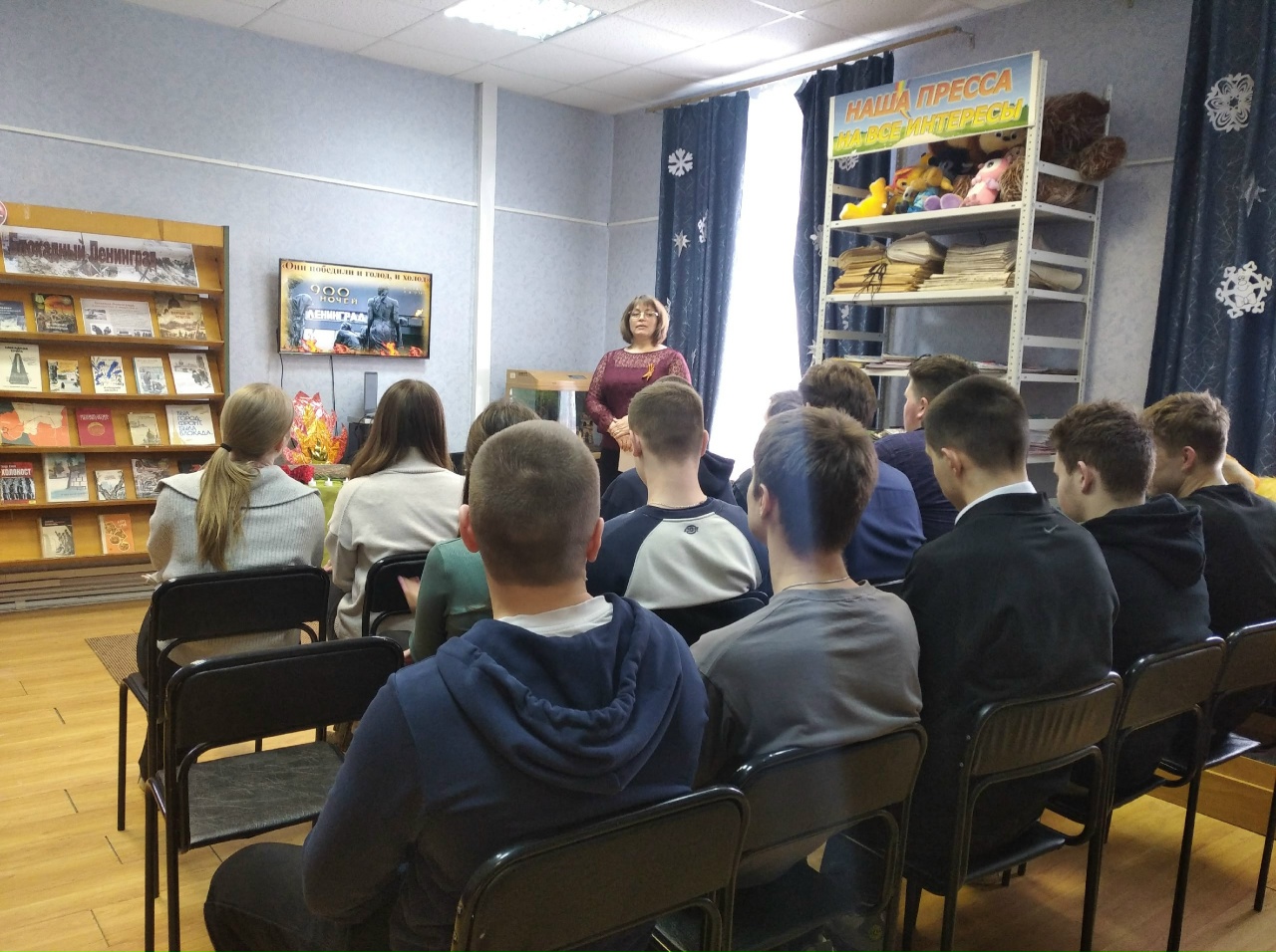 27 января в истории России — особая дата. В этот день 1944 года была прорвана блокада Ленинграда, длившаяся почти 900 дней и ночей. В детской библиотеке прошло мероприятие, посвященное этому событию. Библиотекарь поведала детям о тяжелых испытаниях, пережитых жителями осажденного города: о голоде, холоде, о женщинах и детях, работавших наравне с мужчинами на заводах, а также о мужественной защите Ленинграда советскими солдатами. Особое впечатление на ребят произвела история маленькой девочки Тани Савичевой.