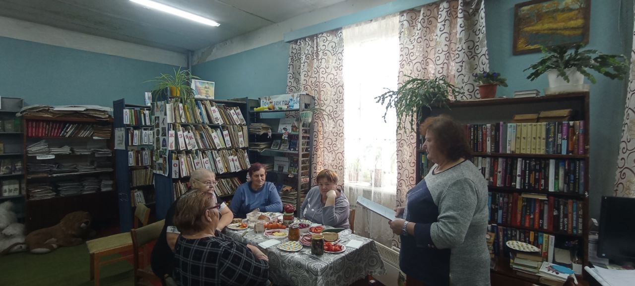 Осень - замечательная пора, самое красивое время года! Осень - время сбора урожая, а в нашем случае радоваться собранному урожаю и делать выводы, загадывать на будущее. 12 октября в библиотеке прошёл праздник урожая"Осенние посиделки ". Праздник начался с презентации выставки " Дары осени ", которая и стала главным украшением праздника. Участники мероприятия пришли не с пустыми руками, опытные огородники продемонстрировали свои достижения сезона и заготовки. Чемпионом выставки стал перец, выращенный Заломаевой М., а новинкой выставки - арбуз Товаровой Т.В заключение праздника накрыли чайный стол, украшением которого стал яблочный пирог, дегустировали заготовки и за чашкой чая делились рецептами.
