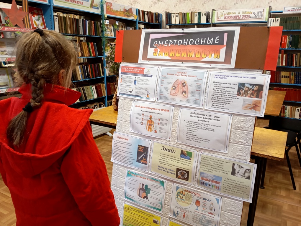 Библиотека представляет информационный стенд, разворачивающий перед зрителем безжалостную панораму губительных пристрастий. Курение, этот старый враг здоровья, предстает во всем своем коварстве, а рядом – зловещий призрак современности: электронные сигареты, обещающие иллюзорную безопасность, но таящие в себе не меньшую угрозу.