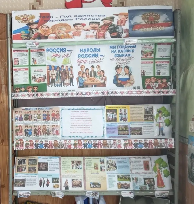 В 2026 году, когда Россия отмечает Год единства народов, в Никитской поселенческой библиотеке открылась тематическая книжная выставка, призванная во всей полноте раскрыть богатство и многообразие культурного наследия страны. Экспозиция, развернулась в нескольких разделах, отражающих уникальные черты и самобытный характер народов России, их героическое прошлое, неповторимую культуру и уходящие корнями в глубь веков традиции. Разделы выставки: "Моя страна – моя Россия", "Живут в России разные народы", "Народное творчество и промыслы", "Народы дружат книгами", "Голос поэзии народов России".