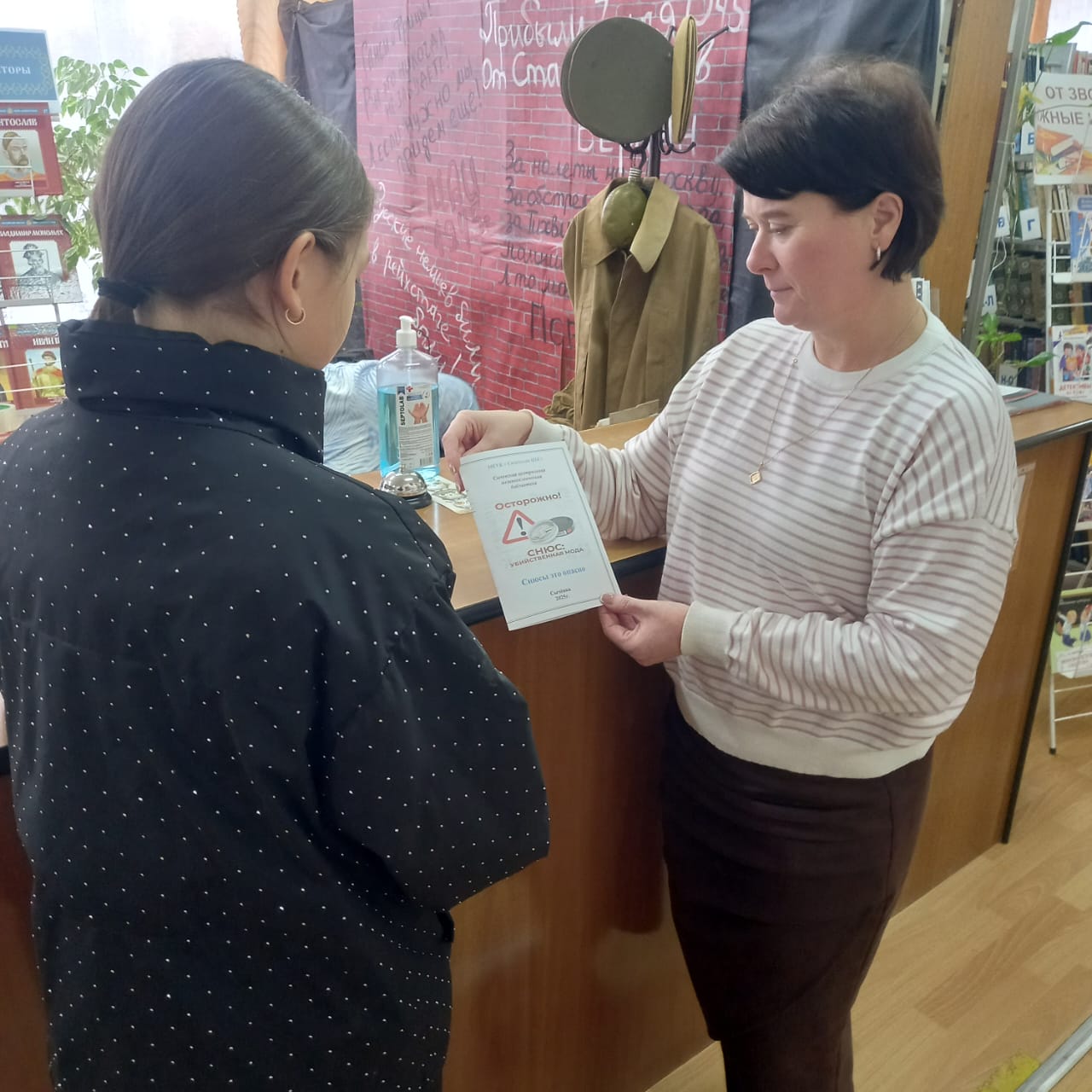 Библиотекарь Сычевской ЦМБ провела информационную акцию «Я выбираю жизнь!» с раздачей памяток по профилактике наркомании. Библиотекарь призвала молодежь, опираясь на активную жизненную позицию, живое общение со сверстниками, выбирать жизнь, беречь свое здоровье, вести здоровый образ жизни, учиться противостоять трудностям и в трудных жизненных ситуациях.