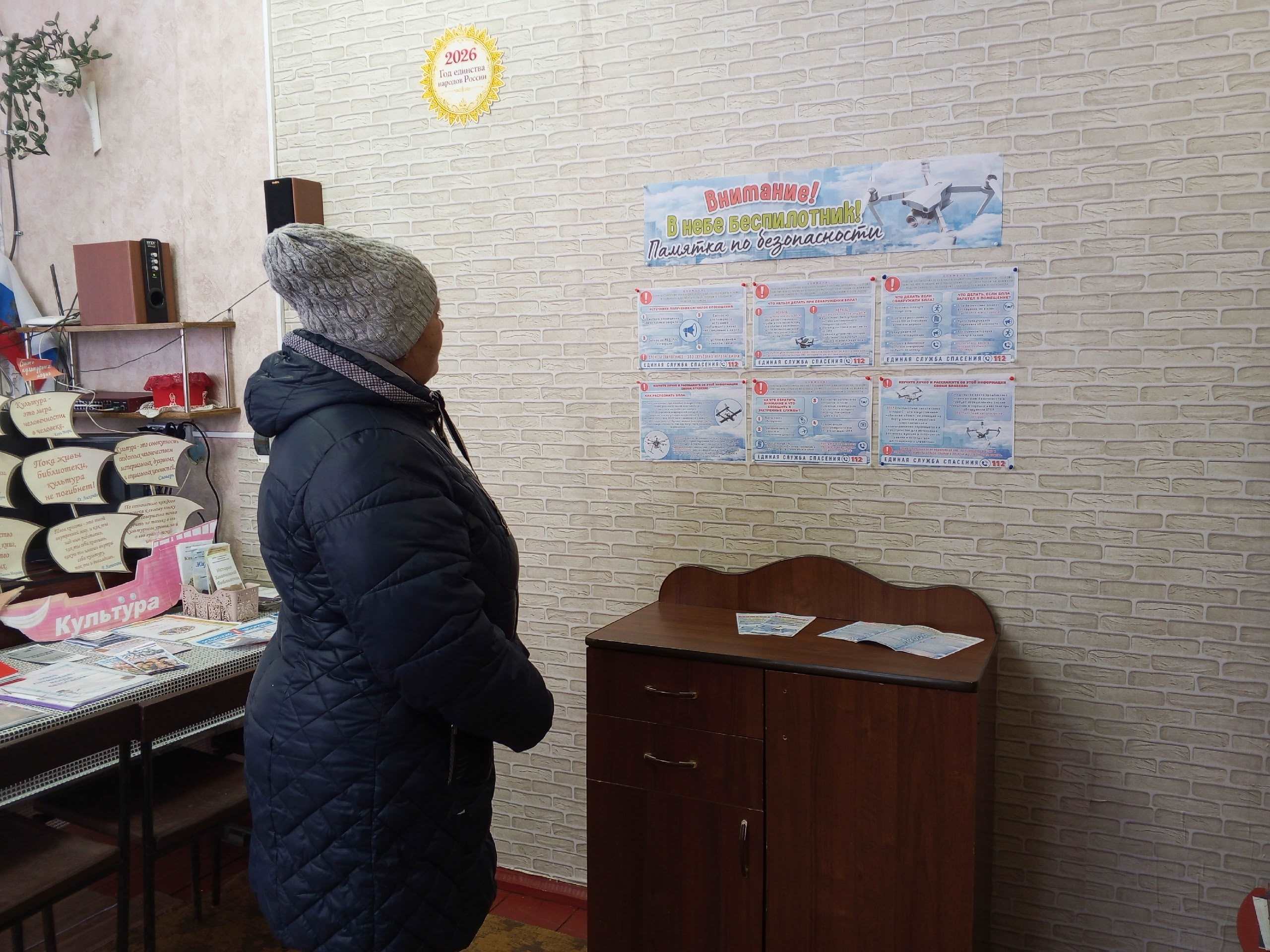 В Хлепенской библиотеке открылась выставка-предупреждение «Внимание! В небе беспилотник!». Она создана, чтобы рассказать жителям о правилах поведения при встрече с беспилотными летательными аппаратами. На выставке ответы на эти и другие вопросы: как отличить беспилотник от самолета или птицы, какие меры предосторожности нужно соблюдать при его обнаружении, куда обращаться, если беспилотник ведет себя подозрительно. Библиотекарь распечатала памятки, которые любой читатель может взять с собой. Главная цель выставки — предотвратить возможные инциденты и повысить осведомленность людей о безопасном использовании беспилотников.