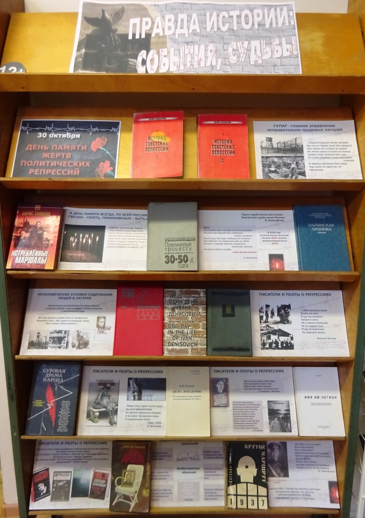 30 октября в России отмечается День памяти жертв политических репрессий. К этой дате в Сычевской ЦМБ организована книжная выставка «Правда истории: события, судьбы».